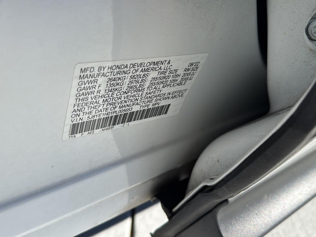 - Front tires: 255/50HR20.0