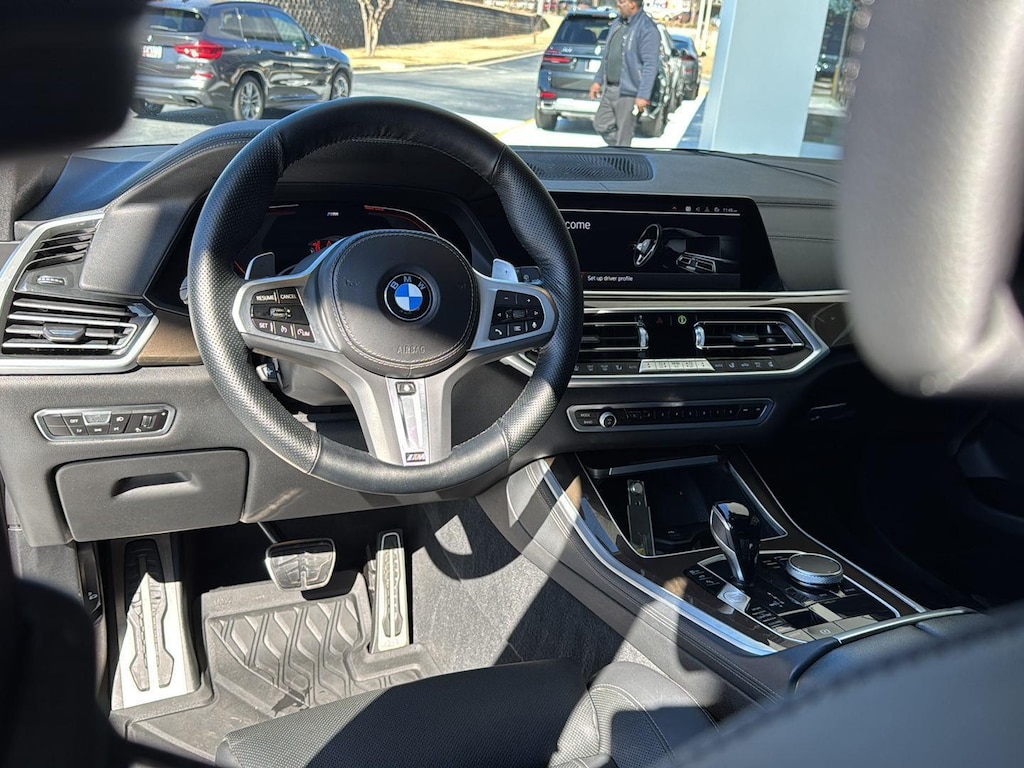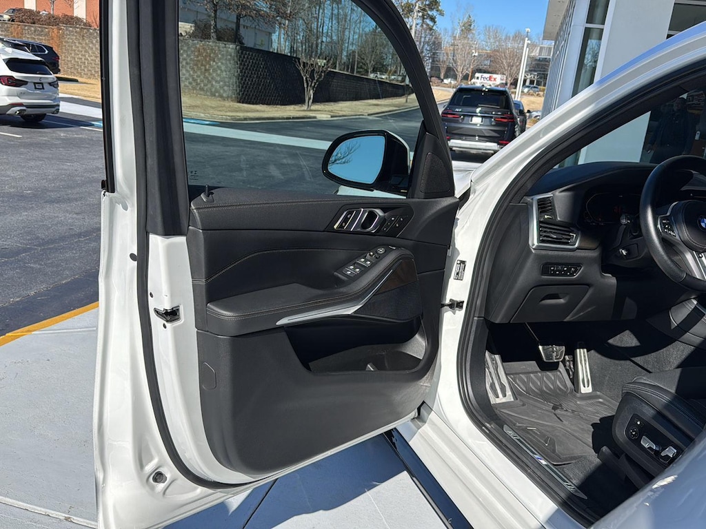 This 2022 BMW X5 xDr40i is Mineral White Metallic with a Black Vernasca Leather Interior. It comes very well equipped with a Parking Assistance Package (Parking Assistant Plus, Drive Recorder, Active Park Distance Control, Parking View 3D View) Premium Package (Remote Engine Start, Head-up Display, Gesture Control), Luxury Seating Package (Front Ventilated Seats, Multi-Contour Seats, Front Massaging Seats), M Sport Package (20" M Start-Spoke BiColor Alloy Wheels, 8-Speed Sport Automatic Transmission, Adaptive M Suspension, Roof Rails in High-Gloss, M Steering Wheel, Aerodynamic Kit, Anthracite Headliner, Shadowline Exterior Trim, SensaTec Dashboard), Hi-Fi Sound System, Brown Ash Grain Wood Trim, Navigation System, Apple CarPlay and Android Auto Compatible, Enhanced B/T and Smartphone, Floor Mats, Wireless Charging, WiFi Hotspot (subscr.), ConnectedDrive Services, Comfort Access Keyless Entry, Connected Package Pro Limited Term, Universal Garage Door Opener, Satellite Radio, Floor Mats, Tire Pressure Monitor, Decoding for No-Dazzle High Beams, Frontal Collision Warning w/ City Collision Mitigation, Lane Departure Warning, Travel and Comfort System, Privacy Glass, Rearview Camera, Active Driving Assistant, Active Blind Spot Detection, Lumbar Support, Runflat Tires, Park Distance Control, Anthracite Headliner, Heated Front Seats/Armrests/Steering Wheel, Increased Top Speed Limiter, and Daytime Driving Lights. Please ask for Internet Sales to receive this special internet offer!