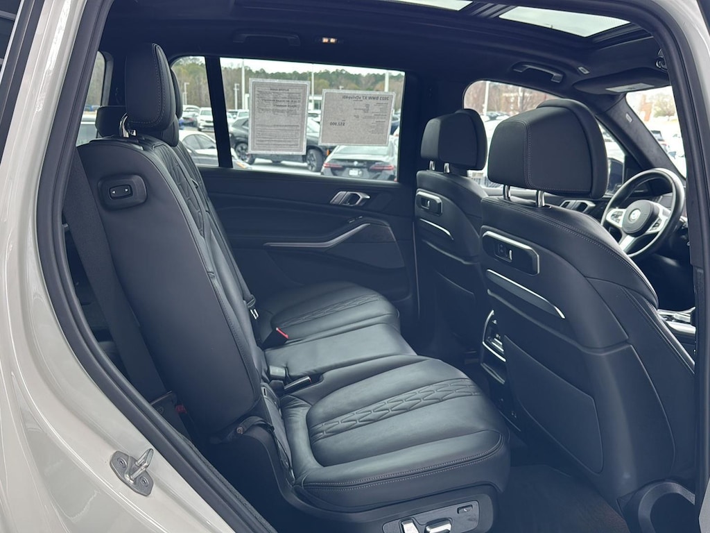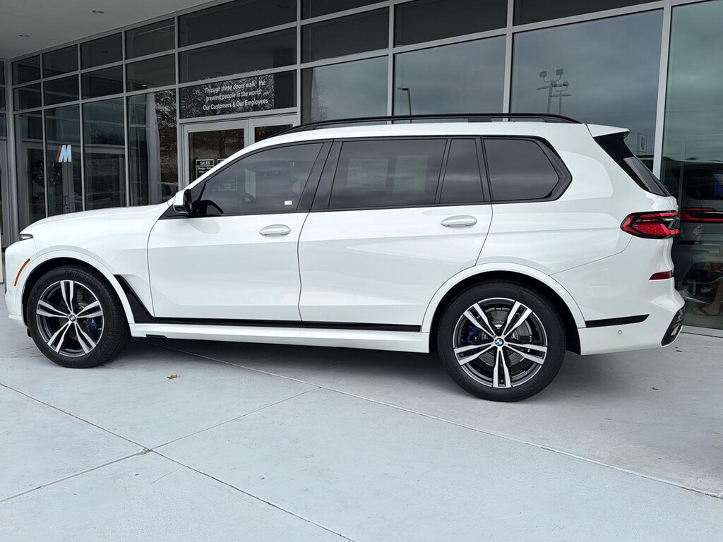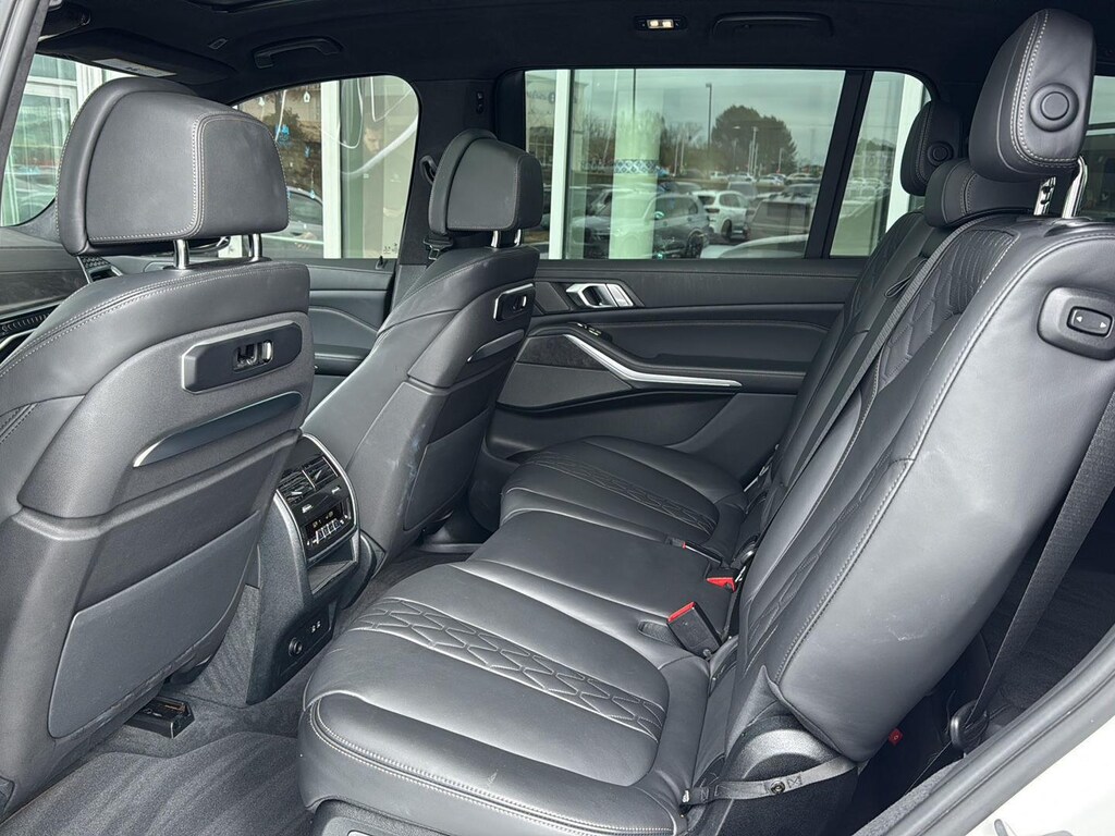 This 2023 BMW X7 xDrive 40i is Alpine White with a Black Extended Merino Interior. It comes very well equipped with a Executive Package (Front Massaging Seats, Gesture Control, Glass Controls, Harman Kardon Surround Sound System, Heated and Cooled Cup Holders, Panoramic Sky Lounge LED Roof, Rear Manual Side Window Shades, Soft-Close Automatic Doors), Heated Front Seats, Armrests and Steering Wheel, M Sport Professional Package (Illuminated Kidney Grille), M Sport Package Pro (M Sport Exhaust System, M Sort Brakes with Blue Calipers, Extended Shadowline Trim), Parking Assistance Package (Parking Assistant Pro, Parking ), Climate Comfort Package (5-Zone Automatic Climate Control, Front & Rear Heated Seats, Front Ventilated Seats), Driving Assistance Pro Package (Active Driving Assistant Pro), M Sport Package (21" M Dual-Spoke Alloy Wheels, M Steering Wheel, Aerodynamic Kit, Roof Rails In High Gloss, Shadowline Exterior Trim, Anthracite Alcantara Headliner), Brown Poplar Wood Trim, 8-Speed Automatic Transmission, Wireless Charging, Navigation System, Live Cockpit Pro (incl. Navi), Personal eSIM 5G, Apple CarPlay/Android Auto Compatible, ConnectedDrive Services, Remote Engine Start, Universal Garage Door Opener, Connected Package Pro, Decoding for No-Dazzle High Beam Assistance, Tire Pressure Monitor, Privacy Glass, Active Blind Spot Detection, Frontal Collision Warning w/ City Collision Mitigation, Lane Departure Warning, Increased Top Speed Limiter, Floor Mats, Rearview Camera, Daytime Driving Lights, Travel and Comfort System, and Acoustic Protection. Please ask for Internet Sales to receive this special internet offer!