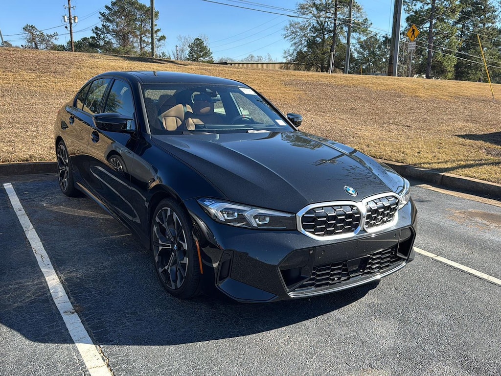 This 2025 BMW M340i is Black Sapphire Metallic with a Cognac Perforated Interior. It comes very well equipped with a Parking Assistance Package (Parking Assistance Plus, Active Park Distance Control, Rearview Camera, Parking View w/ 3D View), Premium Package (Power Tailgate, Harman-Kardon Surround Sound System, BMW Curved Display with HUD), 19" M Dual-Spoke Bi-Color Alloy Wheels, Driving Assistance Package (Active Cruise Control), Heated Steering Wheel, Heated Front Seats, Comfort Access Keyless Entry, Wireless Device Charging, Anthracite Aluminum Rhombicle Trim, Power Front Seats, Lumbar Support, Universal Garage Door Opener, Ambient Lighting, Connected Package Pro, Apple CarPlay and Android Auto Compatibility, Navigation System, Personal eSIM 5G, ConnectedDrive Services, Active Protection, SiriusXM Radio, Power Front Seats, Auto-Dimming Rearview Mirror, Auto-Dimming Mirrors, Tire Pressure Monitor, Dual Zone Climate Control, Alarm System, Apple CarPlay Compatibility, Active Driving Assistant, Remote Engine Start, Runflat Tires, Frontal Collision Warning w/ City Collision Mitigation, Active Blind Spot Detection, Lane Departure Warning, and Daytime Driving Lights. This BMW M340i comes with the balance of a BMW Limited Mileage Warranty with coverage until 06/10/2029 or 50,000 miles! Please ask for Internet Sales to receive this special internet offer!
