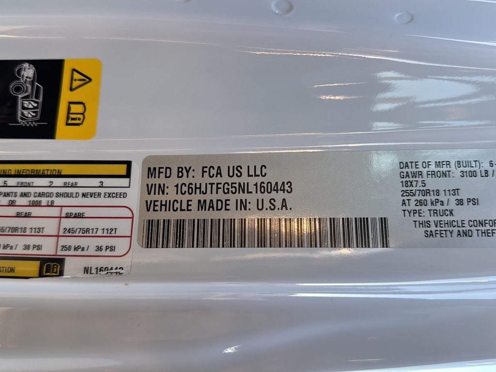 ENGINE: 3.6L V6 24V VVT UPG I W/ESS, TRANSMISSION: 8-SPEED AUTOMATIC (850RE), QUICK ORDER PACKAGE 24G, TIRES: 255/70R18 BSW ALL SEASON, BRIGHT WHITE CLEARCOAT, BLACK, LEATHER TRIMMED BUCKET SEATS, LED LIGHTING GROUP, POPULAR EQUIPMENT PACKAGE, TRAILER TOW PACKAGE, ANTI-SPIN DIFFERENTIAL REAR AXLE, BODY COLOR 3-PIECE HARD TOP, CORNING GORILLA GLASS, MOPAR ALL-WEATHER SLUSH MATS