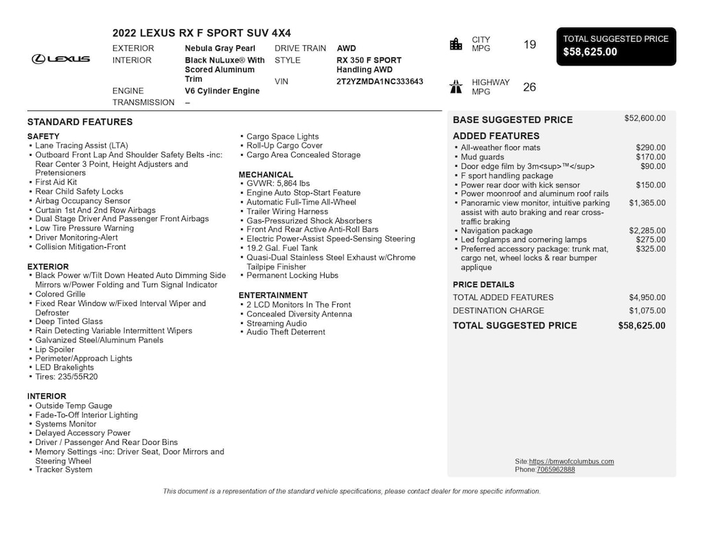 I recently purchased my RX350 from a local dealer. Best purchase I have ever made. High level of standard features. Very well laid out interior ( much better than BMW X3) which felt like driving a doctors office.