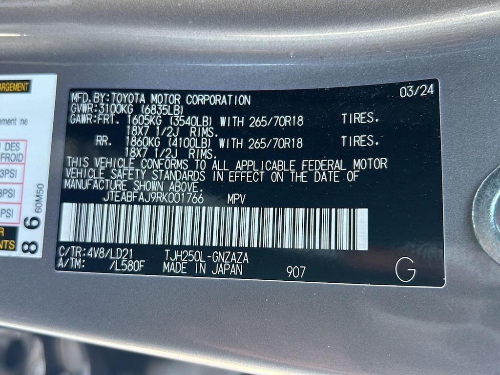 - Front tires: 245/70HR18.0